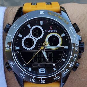 ساعت مچی مردانه ناویفورس — دیجیتال-آنالوگ با بند زرد و آلارم