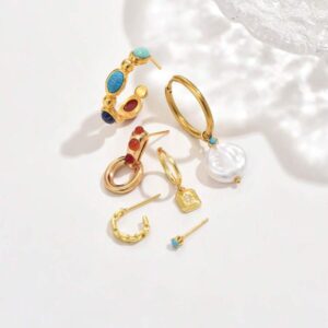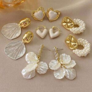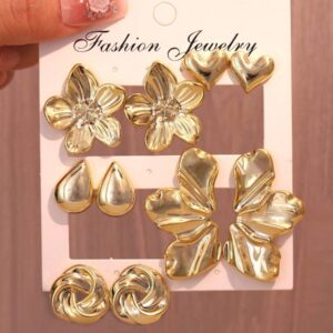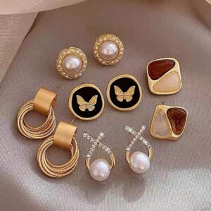 ست 5 تکه گوشواره مینیمال و وینتیج (مروارید مصنوعی، حروف، گل، هندسی)