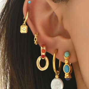 ست 6 تکه گوشواره مدل Minimalist Turquoise Cubic Zirconia