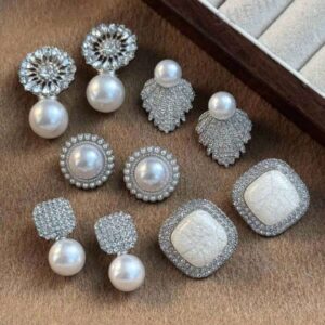 ست گوشواره 10 تکه (5 جفت) — مدل گل رینستون و مروارید