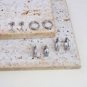 ست 3 تکه گوشواره مدل Zirconia Single Row — میخی و گوشکاف (3pcs)