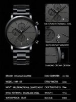 ساعت مچی مردانه چندکاره از برند HANNAH MARTIN، انتخابی ایدهآل برای مردانی است که به دنبال ساعتی شیک، بادوام و کاربردی برای استایلهای مختلف خود هستند. این ساعت با طراحی تمام مشکی و مدرن خود، به راحتی با لباسهای رسمی و روزمره ست میشود و جلوهای خاص به ظاهر شما میبخشد.