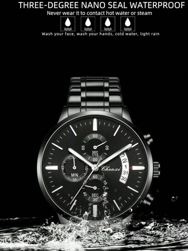 قلب تپنده این ساعت، یک موتور کوارتز دقیق و معتبر است که زمانسنجی بدون خطا را تضمین میکند. علاوه بر این، با درجه مقاومت در برابر آب 3ATM (۳۰ متر)، این ساعت در مقابل پاشش آب، باران و شستشوی دست مقاوم است و نگرانی شما را در فعالیتهای روزانه برطرف میسازد (توجه: برای شنا و غواصی مناسب نیست).