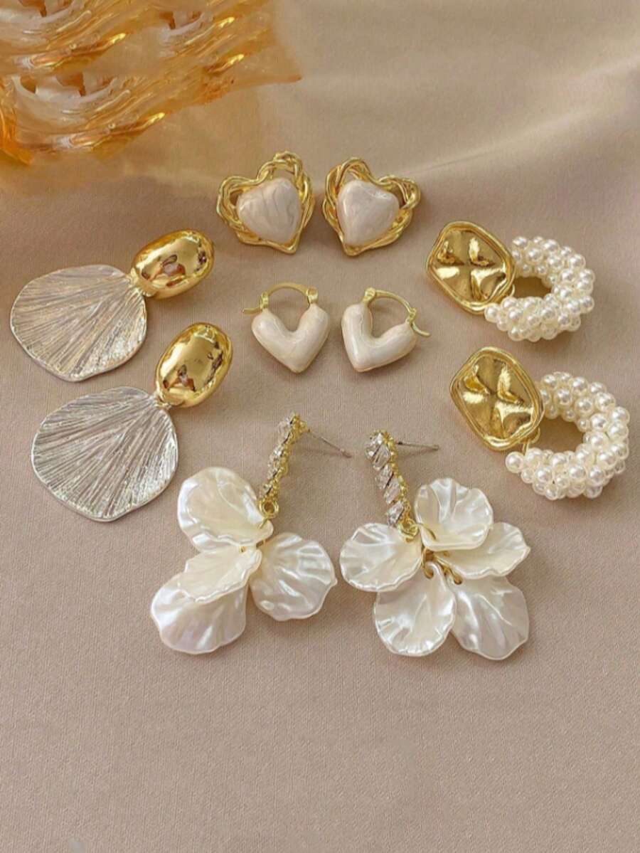ست گوشواره 10 تکه (5 جفت) مدل گل رینستون و مروارید، مجموعهای از طرحهای متنوع شامل گل، گلبرگ، مرواریدی، قطرهاشک و قلب است که بهصورت میخی (Stud) طراحی شدهاند. این مجموعه برای استفاده روزمره، محیطهای رسمی نیمهروزمره و هدیه دادن مناسب است.
