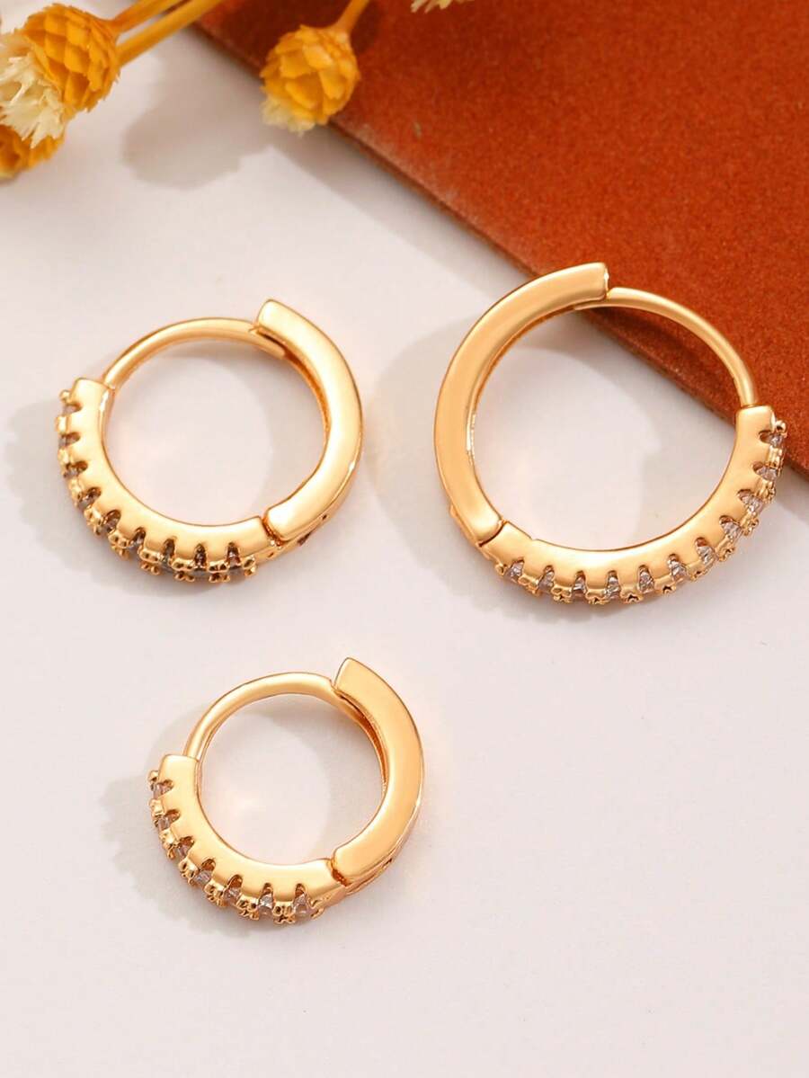 ست 3 تکه گوشواره “Zirconia Single Row”؛ میخی و گوش‌کاف با سنگ زیرکونیا، طراحی مینیمال و مناسب روزمره و مهمانی (3pcs).