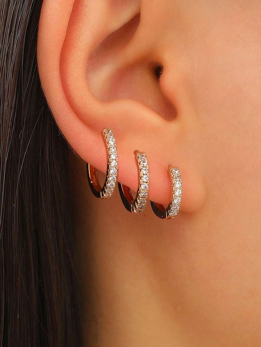 ست 3 تکه گوشواره مدل Zirconia Single Row — میخی و گوش‌کاف (3pcs)