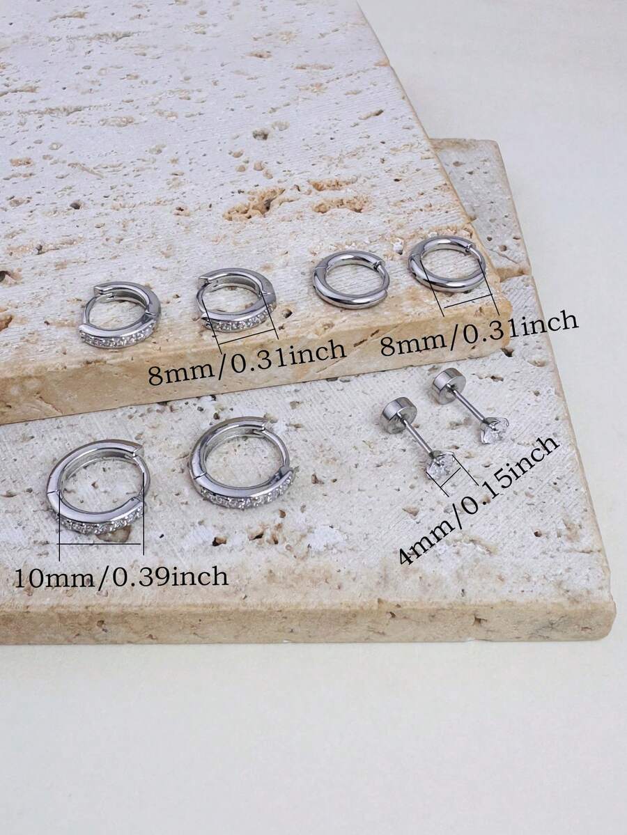 ست 4 تکه گوشواره CZ مدل 181885906 مجموعه‌ای از گوشواره‌های ظریف و شیک است که برای استفاده روزمره و موقعیت‌های رسمی مناسب می‌باشد. این ست شامل ترکیبی از حلقه‌های هافی (huggie hoop) و گوشواره‌های مینی استود با پشت تخت (flat-back stud) است که برای لاله گوش، غضروف و چندین سوراخ گوش طراحی شده‌اند.