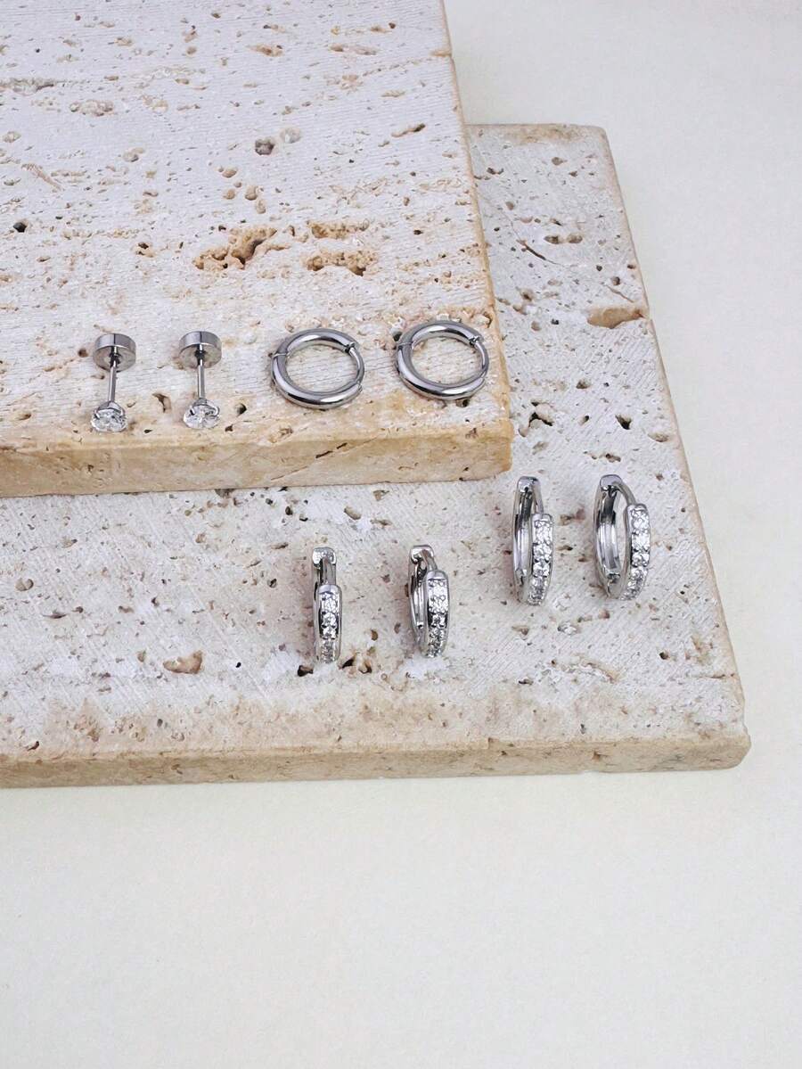 ست 4 تکه گوشواره CZ مدل 181885906 نقره‌ای — هافی و استود با سنگ زیرکونیا، مناسب لاله و غضروف؛ ظریف، سبک و مناسب استفاده روزانه.