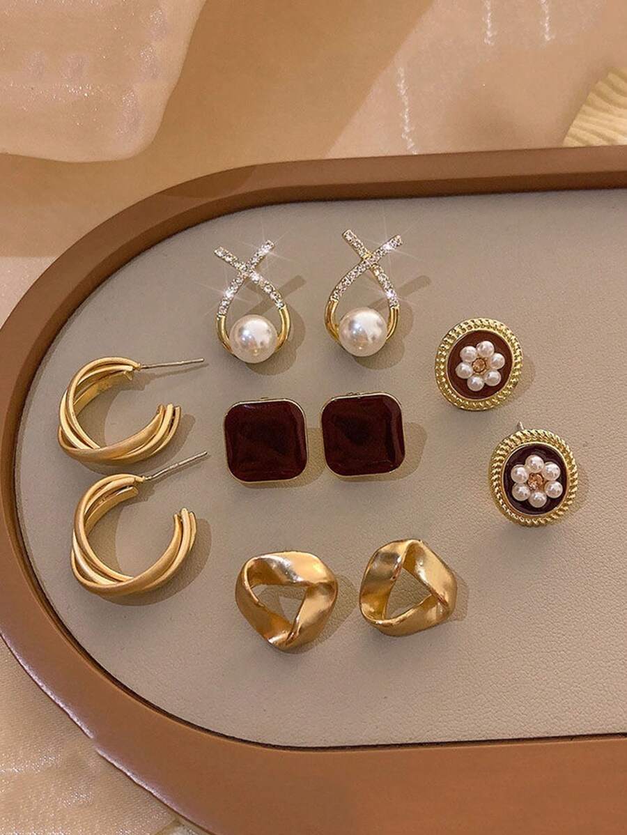 - Product Name / نام محصول: 5pcs Set Minimalist Vintage Faux Pearl Letter Flower Geometric Earrings Set / ست 5 تکه گوشواره مینیمال و وینتیج