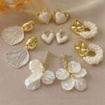 - مجموعه شامل 5 تکه گوشواره با طرحهای متفاوت: مروارید (Faux Pearl)، حرف (Letter)، گل (Flower) و اشکال هندسی (Geometric).