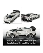 - مدل دقیق و وفادار: این مدل با الهام از Bugatti Centodieci واقعی، دارای طراحی نمادین سفیدرنگ، ورودیهای هوای جلویی، بال عقب قابل تنظیم و جزئیات دقیق موتور W16 است.