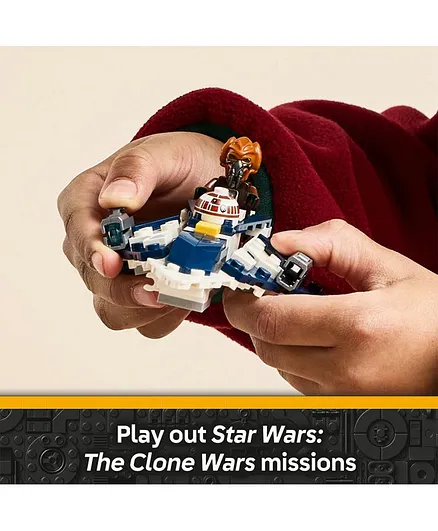 - طراحی اصیل و دقیق: این جنگنده با الهام از مدل نمایش داده شده در انیمیشن محبوب Star Wars: The Clone Wars طراحی شده و دارای رنگبندی و جزئیات وفادار به نسخه اصلی است.