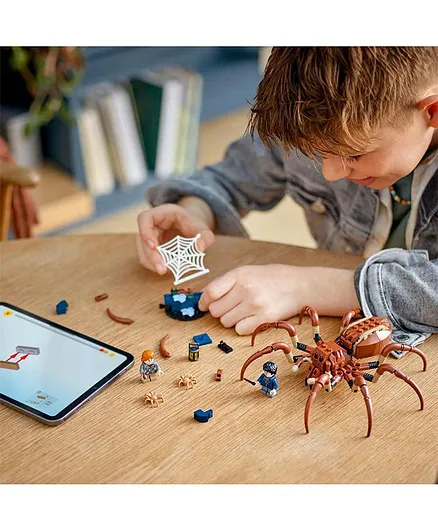 - فیگور بزرگ و متحرک آراگوگ: ستاره اصلی این مجموعه، بزرگترین و واقعیترین فیگور آراگوگ است که تاکنون با قطعات لگو ساخته شده است. این فیگور دارای پاها، نیشها و پدیپالپهای کاملاً متحرک است که امکان قرار دادن آن در حالتهای مختلف را فراهم میکند.