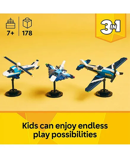 با مجموعه LEGO Creator 3in1 Race Plane، خلاقیت خود را به پرواز درآورید و آسمان را تسخیر کنید. این مجموعه بینظیر، تنها یک اسباببازی نیست، بلکه دروازهای به سوی سه دنیای متفاوت از هوانوردی است که ساعتها سرگرمی و آموزش را برای کودکان و علاقهمندان به لگو فراهم میآورد.