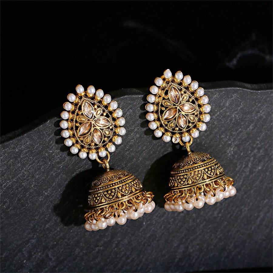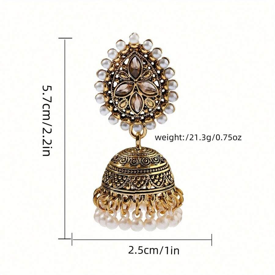 گوشواره آویز وینتیج Teardrop — 1 جفت؛ آلیاژ، مروارید مصنوعی و نگین راینستون؛ طرح اشکشکل و آویز مناسب مهمانیها و استفاده روزمره.