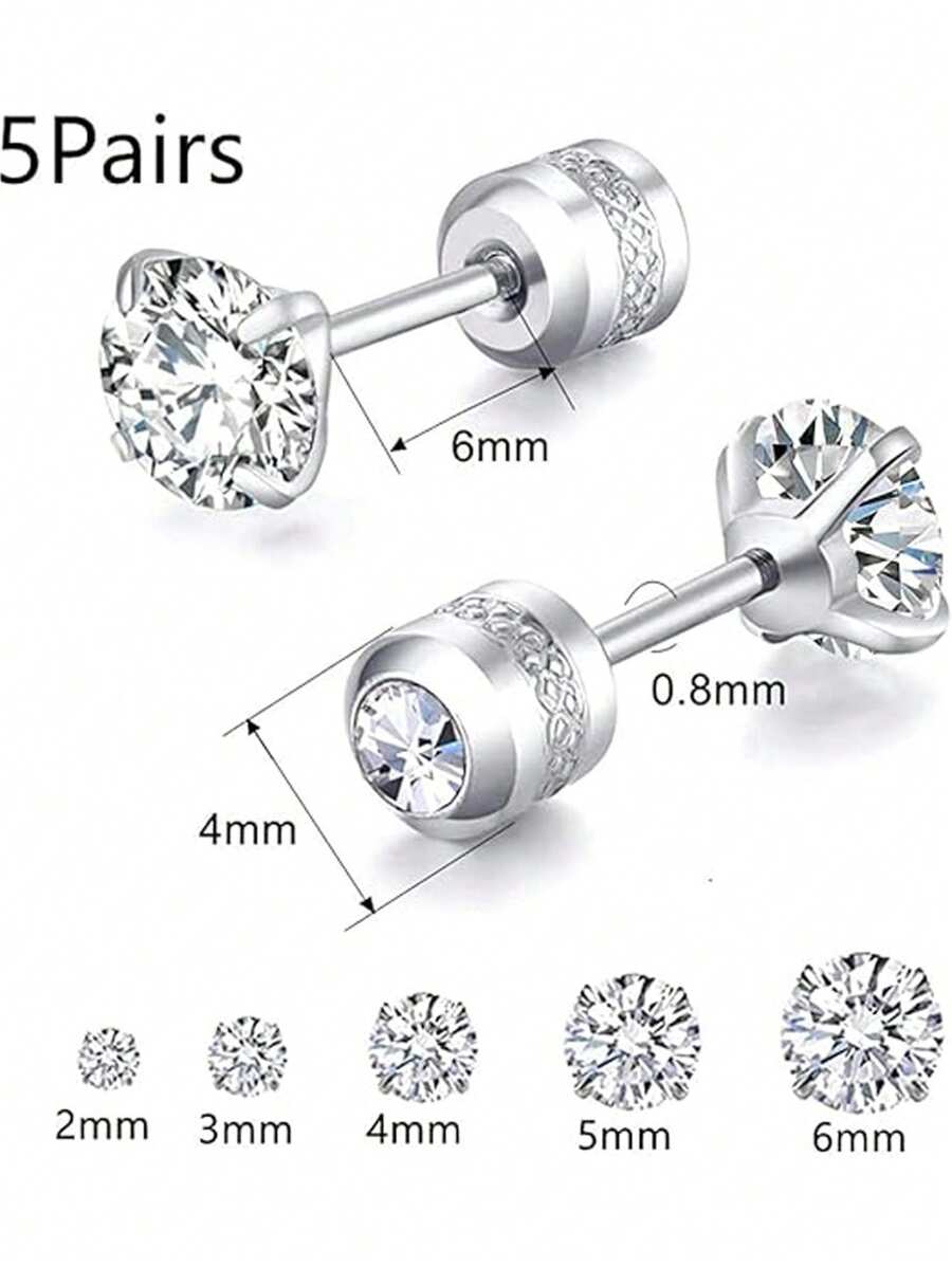 گوشواره مدل Titanium Steel — 5 جفت (مناسب گوشهای حساس)