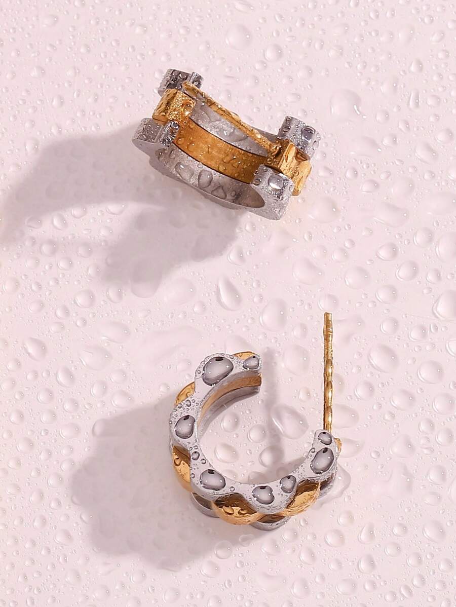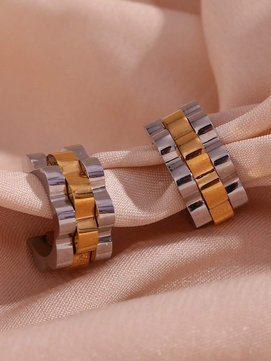 MamacitaSlay — 1 جفت گوشواره کاف حلقهای از فولاد ضد زنگ، طرح گلشکل لایهای دو رنگ؛ سبک، مقاوم و مناسب استایل روزمره.